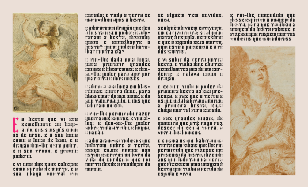 Com uma estilística gótica e ideal para títulos, esta fonte apresenta um design unicase, misturando formas de caixa alta e baixa em uma mesma altura de x. Ela é uma fonte variável, permitindo que sua largura se altere entre condensada e expandida, por meio de um eixo de variação que controla essa dimensão.